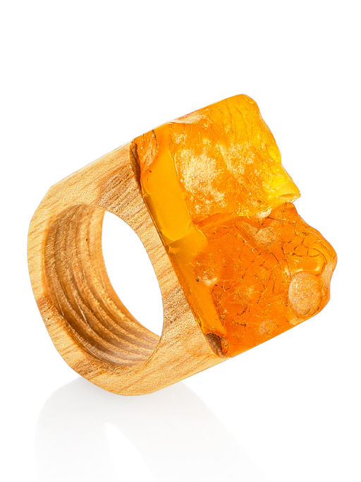 Кольцо в эко-стиле из дерева и натурального янтаря Индонезия