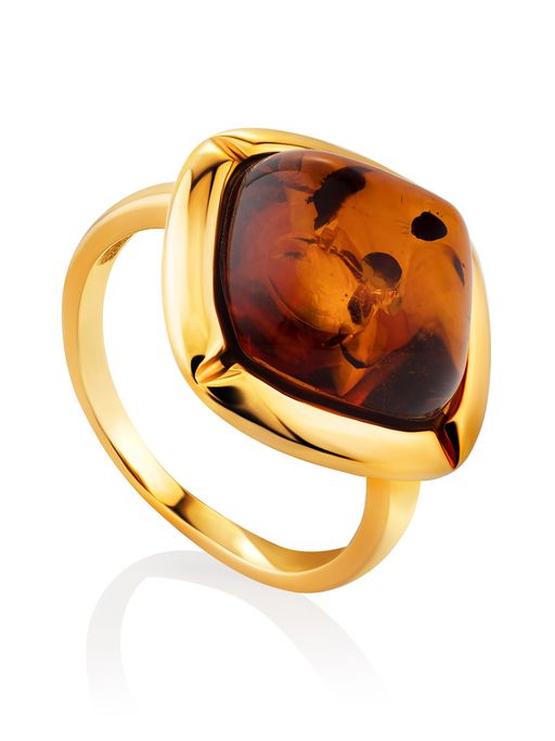 Элегантное кольцо Зефир из золочёного серебра с натуральным янтарём