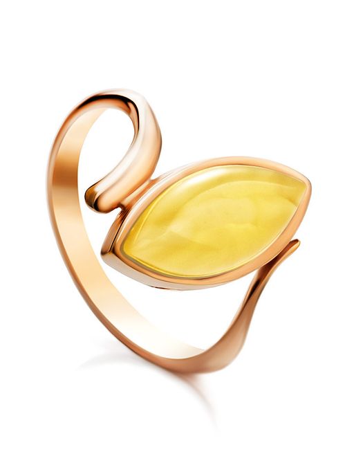 Изящное позолоченное кольцо с натуральным медовым янтарём Адажио