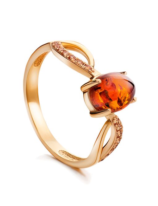 Женственное позолоченное кольцо с коньячным янтарём и кристаллами Ренессанс, 910004509