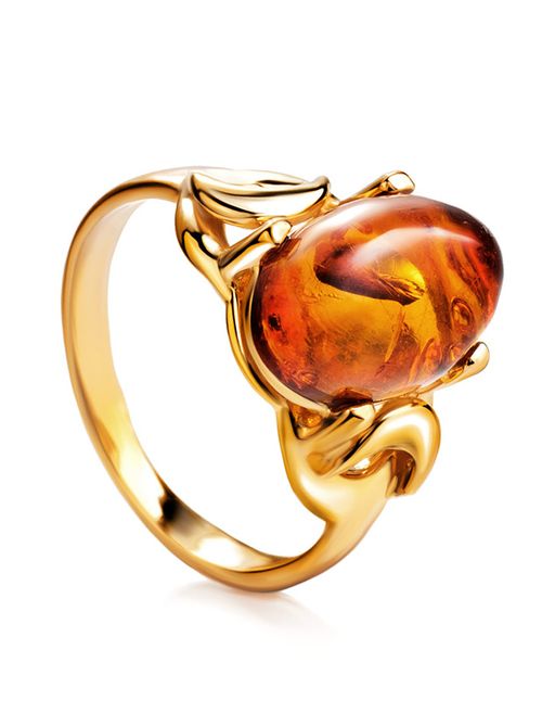 Элегантное позолоченное кольцо с янтарём коньячного цвета Пруссия