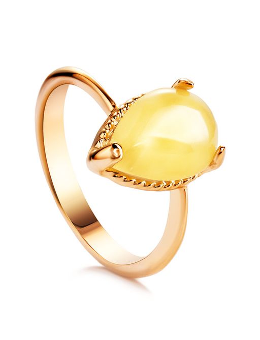Нежное кольцо Огонёк из позолоченного серебра и медового янтаря