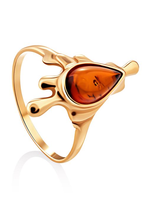 Оригинальное кольцо из позолоченного серебра с янтарём коньячного цвета Иллюзия