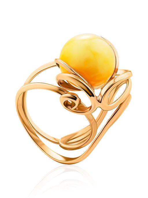 Оригинальное кольцо из золочённого серебра и янтаря медового цвета Валенсия