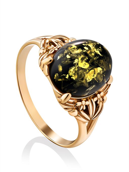 Небольшое изысканное кольцо Кармен из позолоченного серебра и зелёного янтаря