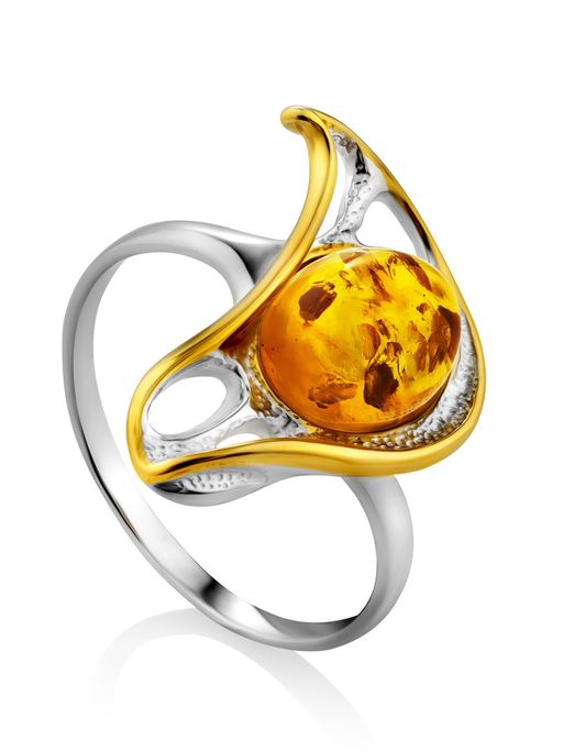 Кольцо из серебра с позолотой и натурального золотистого янтаря Глория