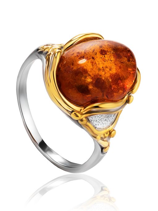 Кольцо из серебра с позолотой, украшенное янтарём коньячного цвета Вирсавия