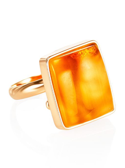 Красивое кольцо из позолоченного серебра и медового янтаря