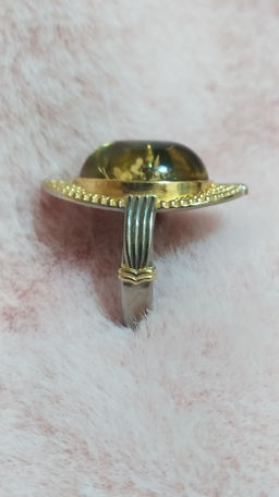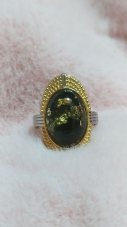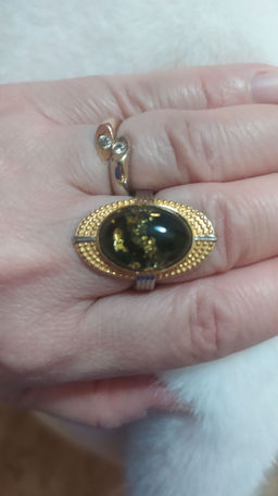 Крупное овальное кольцо Мойра из серебра с чернением и золочением и янтаря