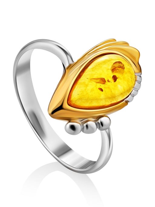 Нежное кольцо Алиби из серебра с золочением и натурального золотистого янтаря