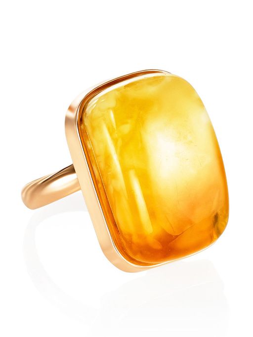 Роскошное объёмное кольцо из позолоченного серебра и медового янтаря