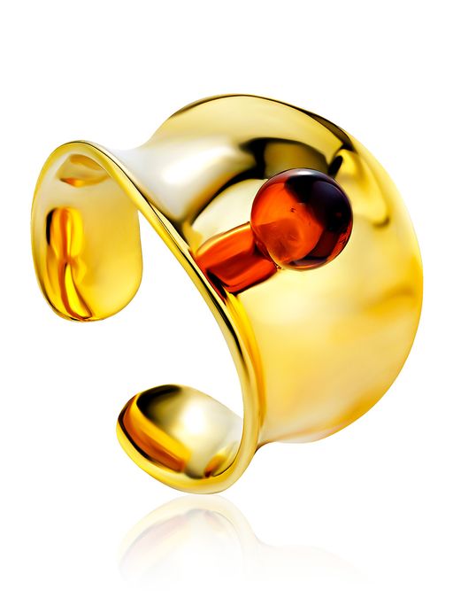Яркое нарядное кольцо из позолоченного серебра и янтаря Palazzo от ifamore