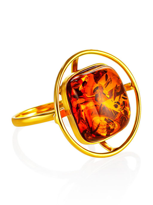 Красивое позолоченное кольцо с коньячным янтарём Амфитрита