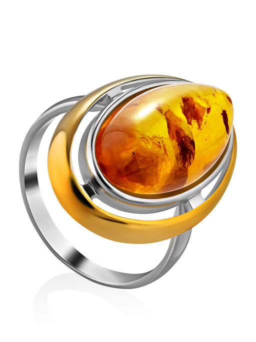 Крупное кольцо, украшенное янтарём Аллегро