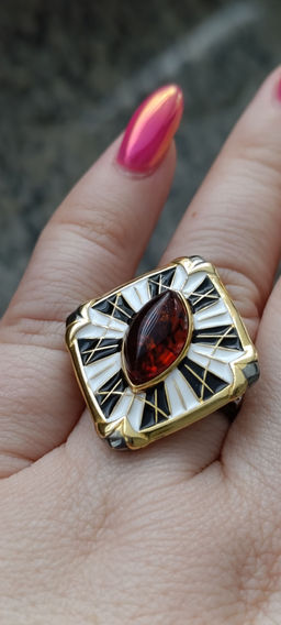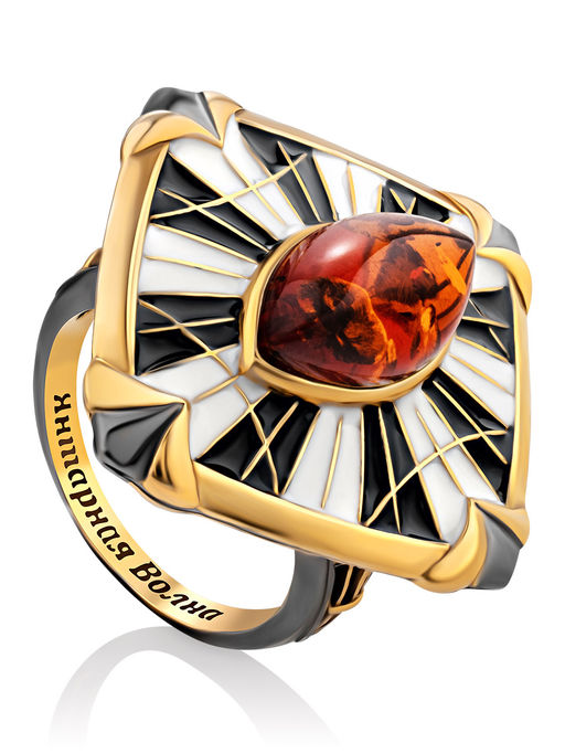 Роскошное кольцо, украшенное коньячным янтарём Фараон