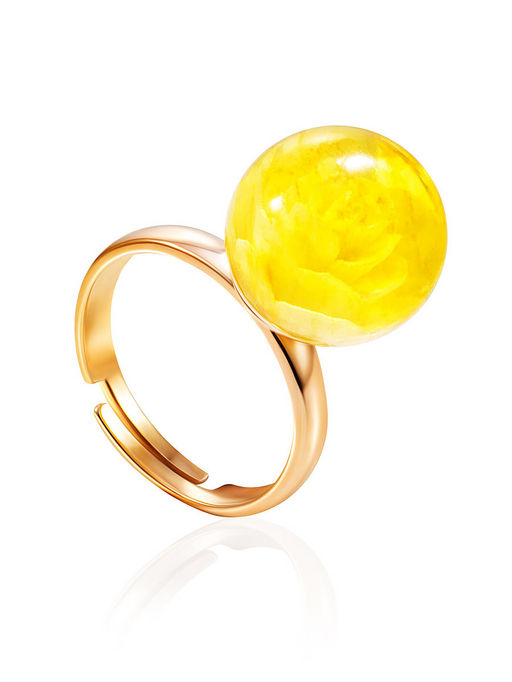 Эффектное кольцо с янтарём с резьбой-инталией Роза