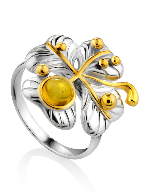 Яркое красивое кольцо Клевер из янтаря