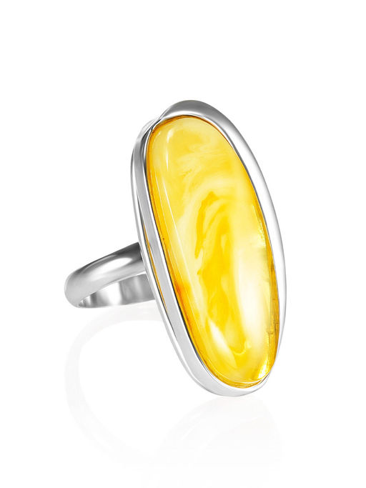 Кольцо с натуральным живописным янтарём Лагуна
