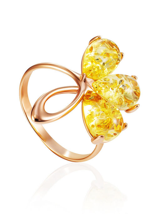 Яркое нарядное кольцо Одуванчик с лимонным янтарём