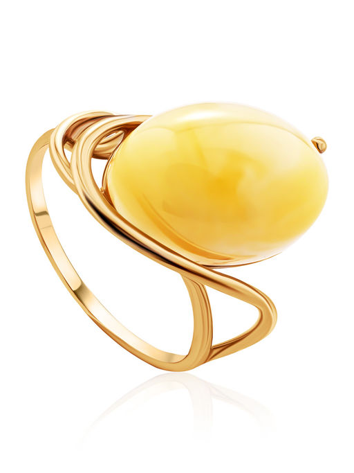 Яркое и необычное кольцо с натуральным медовым янтарём Сигма
