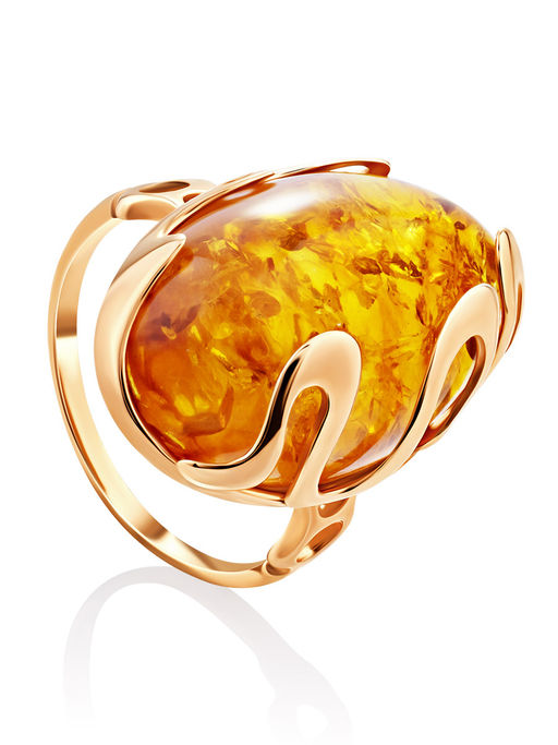 Эффектное объёмное кольцо Иллюзия из натурального янтаря