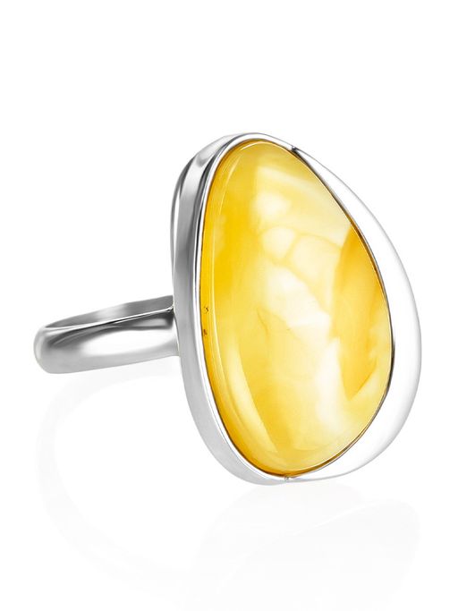 Изысканное кольцо из натурального текстурного янтаря и серебра Лагуна
