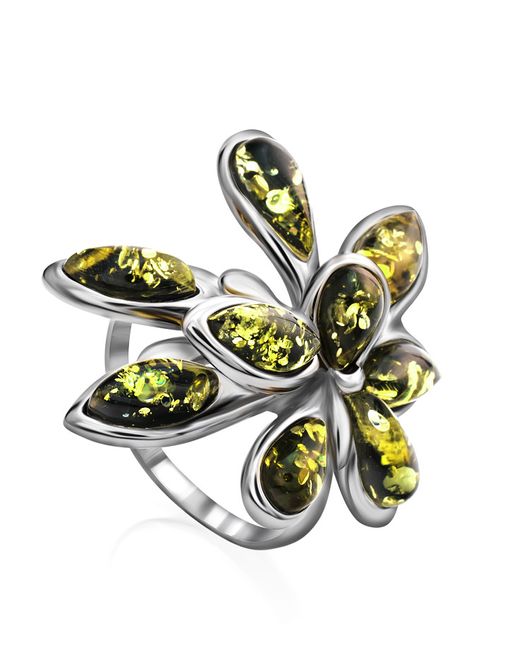 Кольцо из серебра со вставками из натурального янтаря Георгина