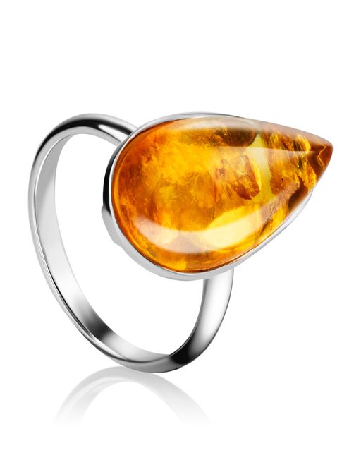Стильное серебряное кольцо Импульс с золотистым янтарём