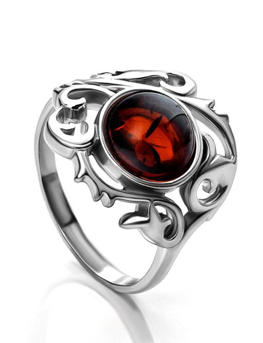 Яркое кольцо из серебра и натурального янтаря вишнёвого цвета Кордова