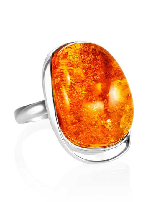 Крупное кольцо с красивым золотистым янтарём Лагуна