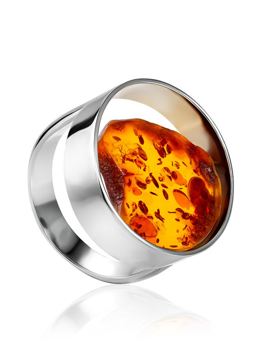Овальное кольцо Самум из натурального янтаря коньячного цвета
