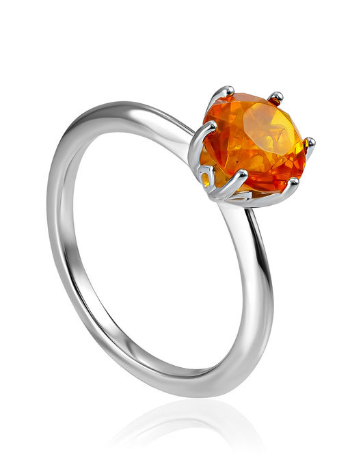 Тонкое лёгкое кольцо с гранёным коньячным янтарём Баккара