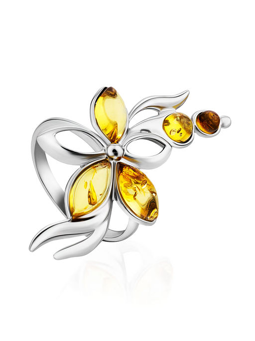 Нежное кольцо с натуральным балтийским янтарём лимонного цвета Вербена