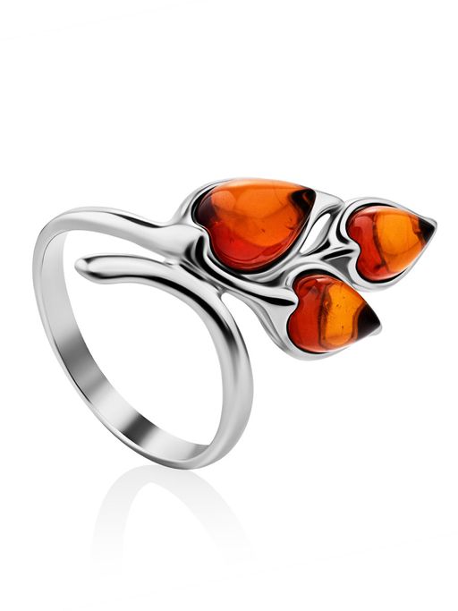 Нежное серебряное кольцо со вставками из натурального коньячного янтаря Флора