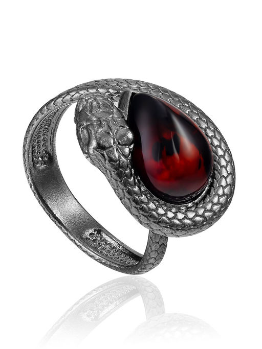 Эффектное текстурное кольцо Эдем с вишнёвым янтарём