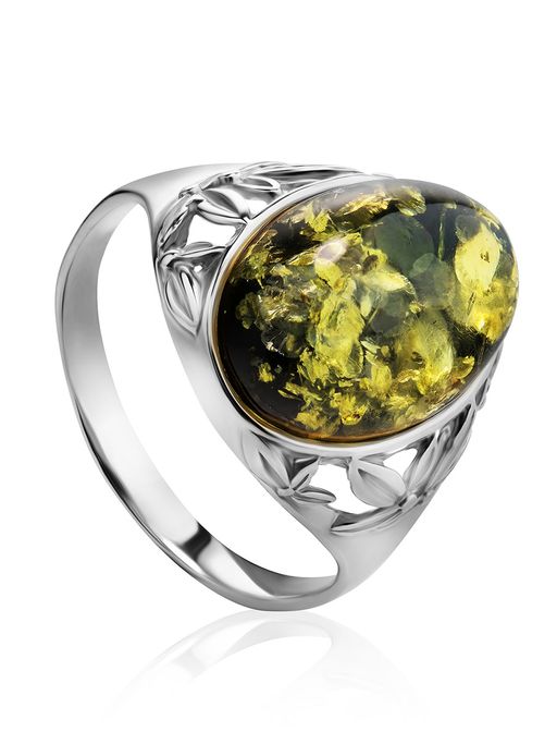 Кольцо из серебра 925 пробы со вставкой из натурального янтаря Кармен