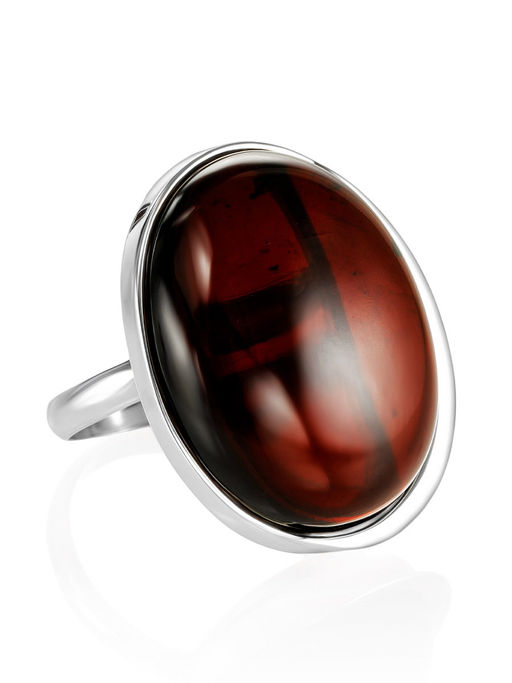 Кольцо Лагуна с натуральным янтарем темно-вишневого цвета