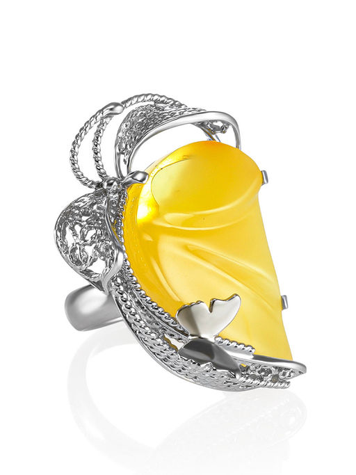 Эксклюзивное кольцо с натуральным янтарём Филигрань