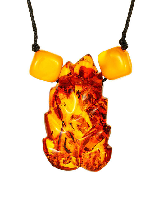Стильная подвеска из янтаря на шнурке Листочек