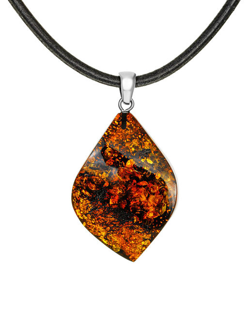 Искрящаяся янтарная подвеска в форме листика на кожаном шнурке