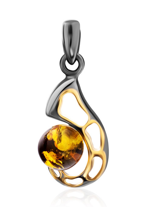 Небольшой изящный кулон с чернением и золочением, украшенный янтарём Мадагаскар