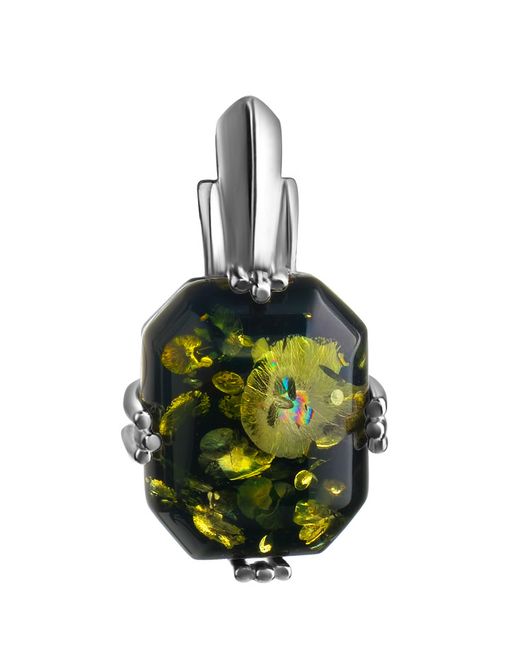 Красивый серебряный кулон с зелёным янтарём Марокко