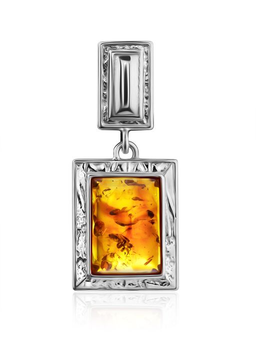 Элегантный кулон из серебра со вставкой из натурального балтийского янтаря коньячного цвета Аврора