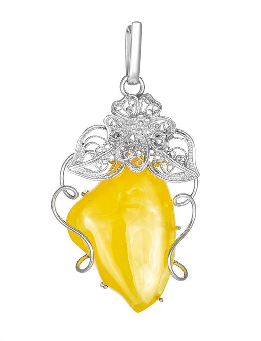 Крупная подвеска из цельного натурального янтаря медового цвета Филигрань