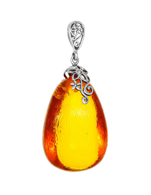 Кулон-капля из золотистого янтаря с необычной текстурой поверхности