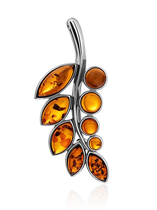 Яркая брошь-кулон из натурального коньячного янтаря Папоротник