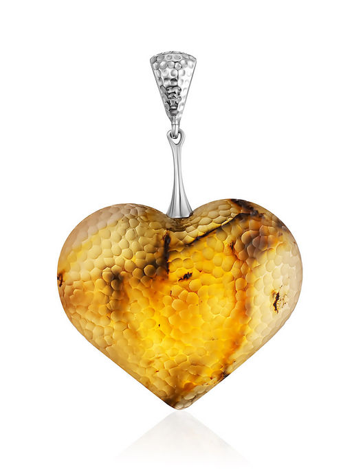 Кулон из натурального янтаря Сердце с необычной кусаной поверхностью