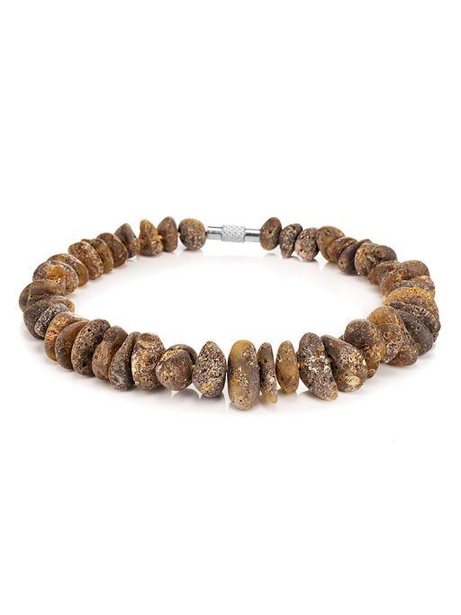 Лечебный браслет из тёмного нешлифованного янтаря на струне с замочком