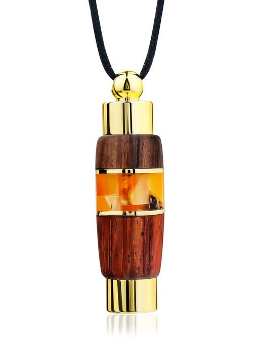 Подвеска Индонезия из дерева и янтаря с колбой для духов или масла
