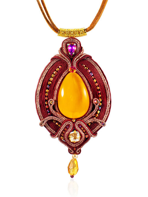 Крупная плетёная подвеска с медовым янтарём Индия